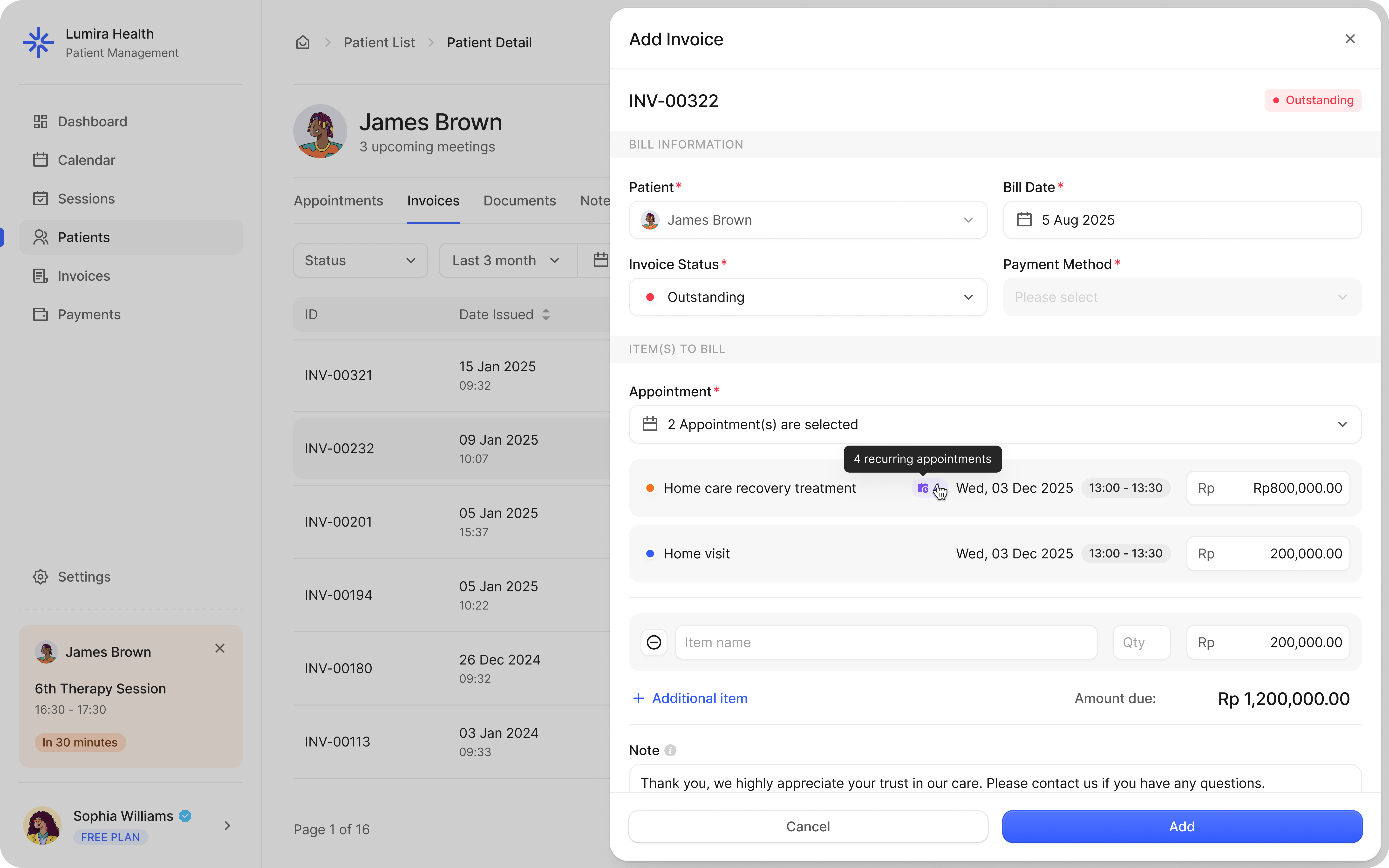 After you sign up and start using Lumira, go to the Billing tab inside the app. Upgrading takes one click. All your existing patients, notes, and invoices carry over instantly.
